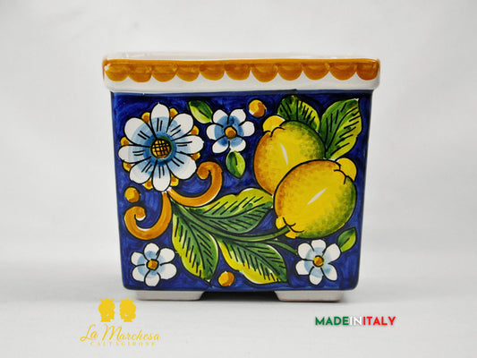 Fioriera Quadrata Decorata in Ceramica di Caltagirone 19cm