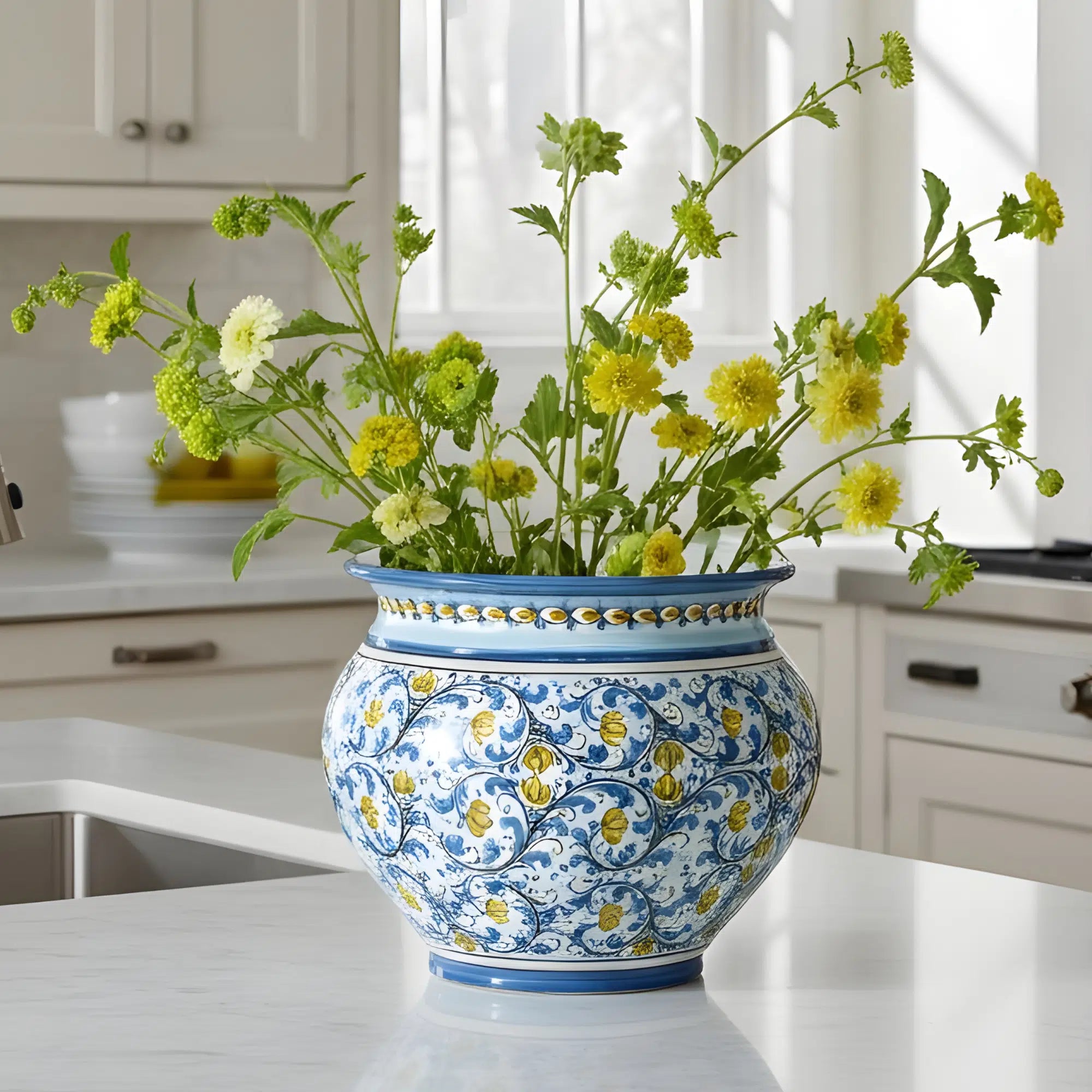 Vaso a Cilindro Decorato in Ceramica di Caltagirone 40cm - Vari Decori