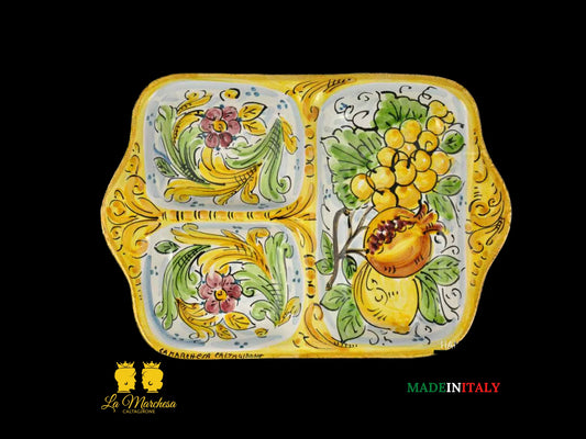 Antipastiera in Ceramica di Caltagirone Quadrata Decorata 4 scomparti - Vari Decori