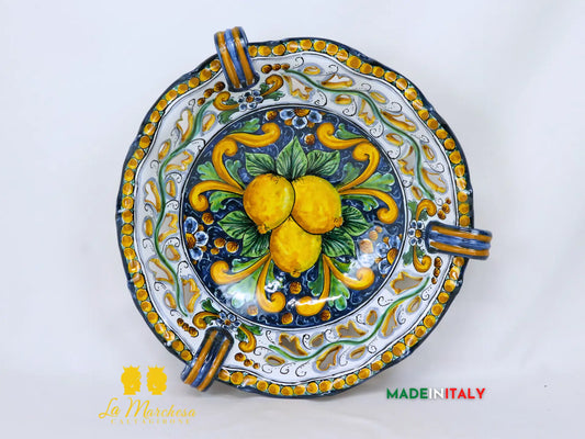 Centrotavola Manici Decoro Limoni in Ceramica di Caltagirone Ø38cm