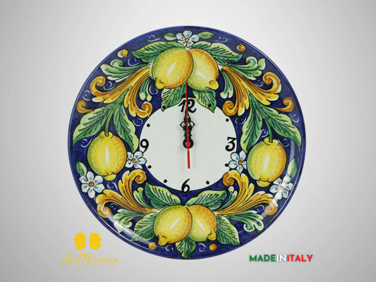 Orologio in Ceramica di Caltagirone decoro limoni 30cm - Vari Decori