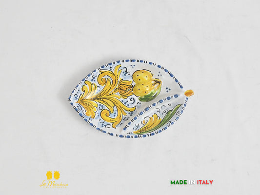 Piatto Antipastiera Ceramica di Caltagirone foglia limone decorato