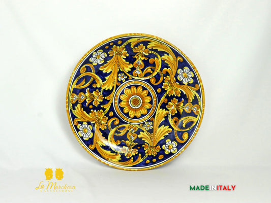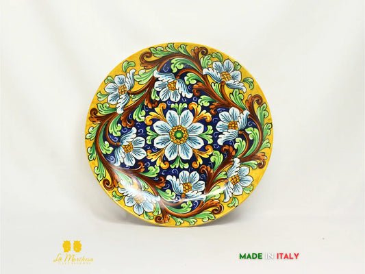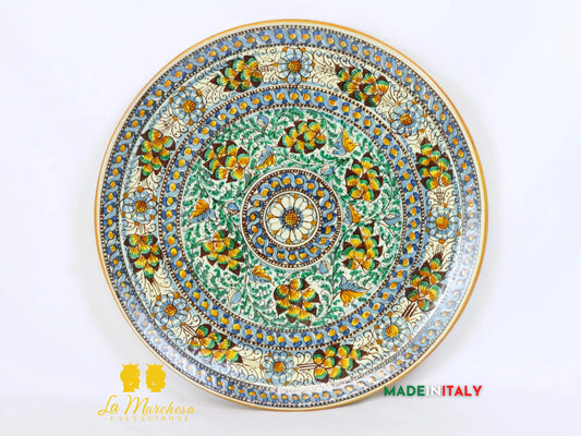 Piatto in Ceramica di Caltagirone decorato a mano ornato barocco fiori 37cm