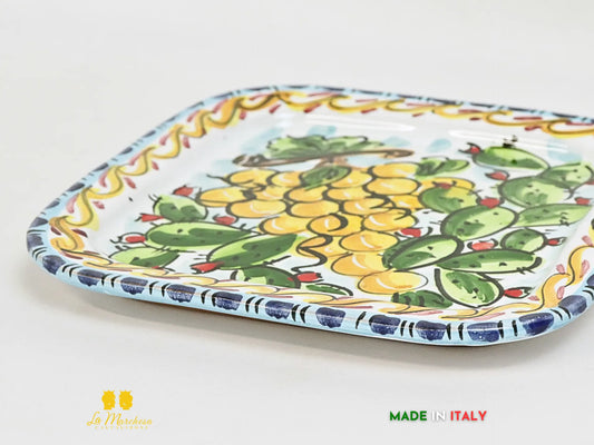 Piatto in ceramica di Caltagirone quadrato frutta decorato 19cm