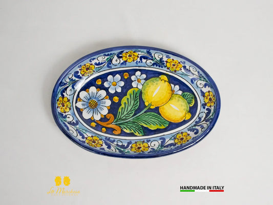 Vassoio in Ceramica di Caltagirone Blu Cobalto Limoni - Varie Misure