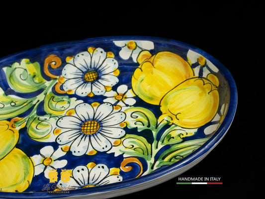 Vassoio in Ceramica di Caltagirone Pirofila blu cobalto limoni 41cm