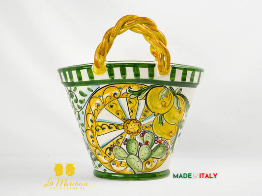 Coffa Siciliana Portavaso Ceramica di Caltagirone Carretto e Fichi D'India- Varie Misure