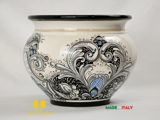 Portavaso Decoro Barocco Nero in Ceramica di Caltagirone 32cm