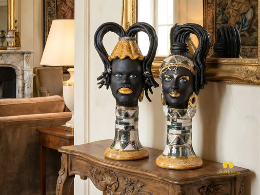 Teste di Moro Design Afro Platino Oro e Madreperla in Ceramica di Caltagirone cm60
