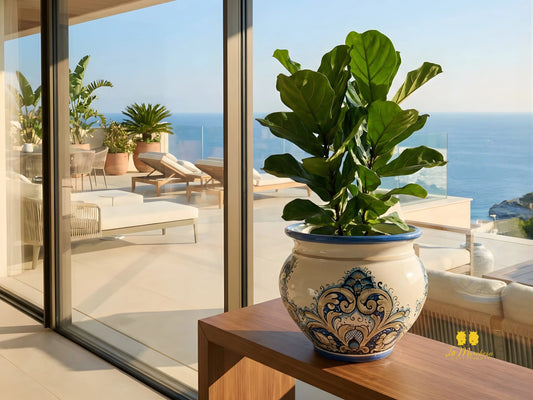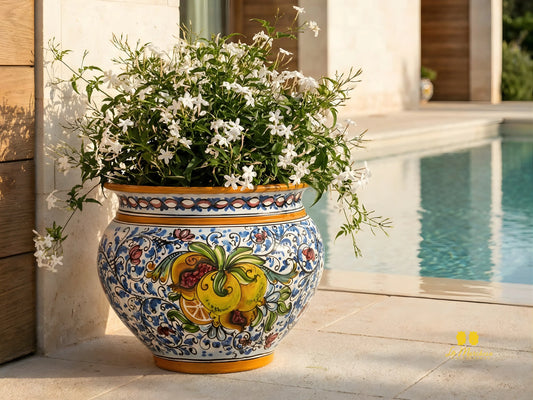 Portavaso in Ceramica di Caltagirone Decoro Blu - Varie Misure