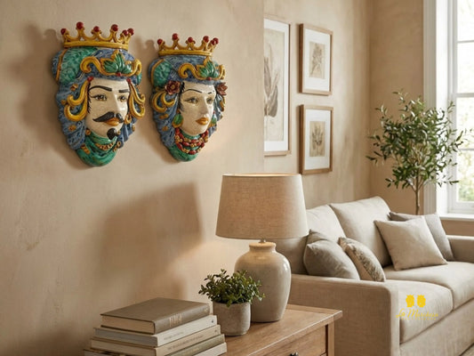 Teste di Moro in Ceramica di Caltagirone da Parete Craquelé - Vari Modelli