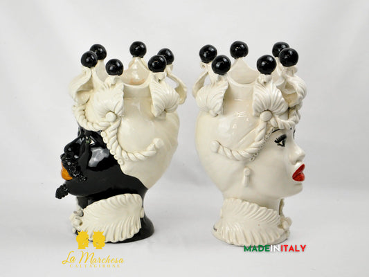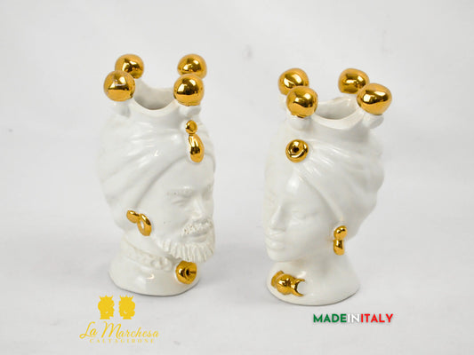 FINE SERIE - Teste di Moro Bianche e Oro in Ceramica di Caltagirone 16cm