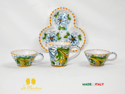 Set Degustazione Caffè Macchiato in Ceramica di Caltagirone Decoro Ornato
