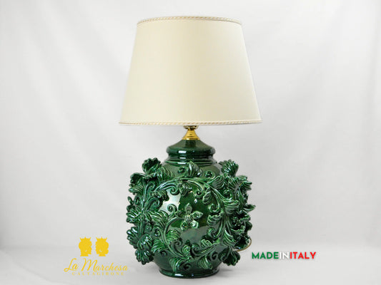 Lampada Barocco in Ceramica di Caltagirone Foglie Rilievo 35cm