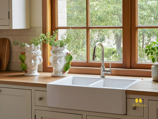Teste di Moro Bianco Fichi D'India in Ceramica di Caltagirone 27cm