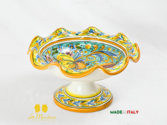 Portafrutta Ciotola con alzata orlata in Ceramica di Caltagirone frutta L20