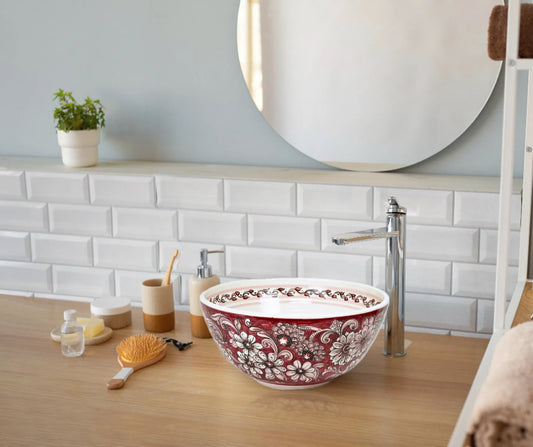 Lavello Decoro Ornato Bordeaux in Ceramica di Caltagirone ø45cm