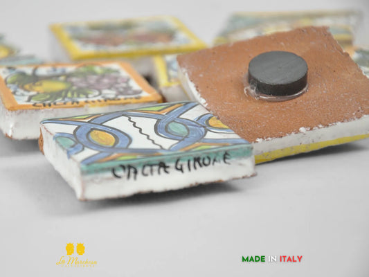 Calamita in Ceramica di Caltagirone mattonella decorata a mano 5cm - Decoro assortito