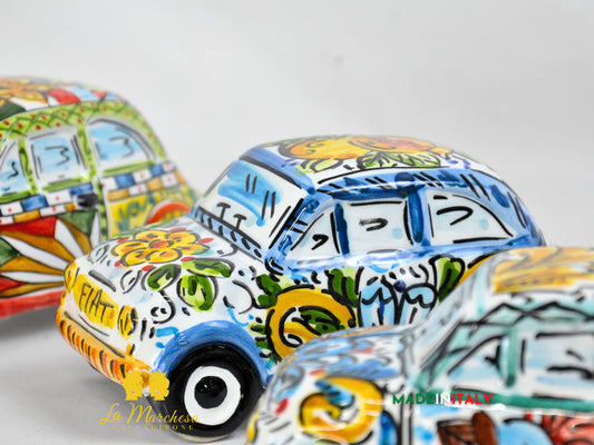 Modellino Fiat 500 Sicilia in Ceramica di Caltagirone 18cm