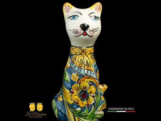 Gatto in Ceramica di Caltagirone decorato a mano cm20