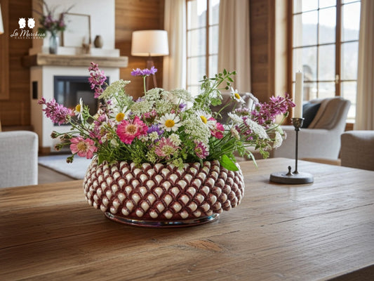 Centrotavola Ciotola Pigna Fumè Bordeaux Madreperla in Ceramica di Caltagirone