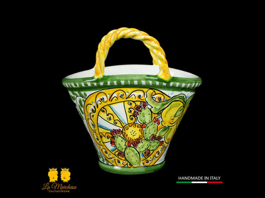 Coffa Siciliana Portavaso Ceramica di Caltagirone Carretto e Fichi D'India- Varie Misure