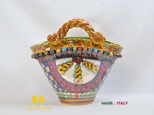 Vaso Porta Pianta Coffa Decorata in Ceramica di Caltagirone 22cm