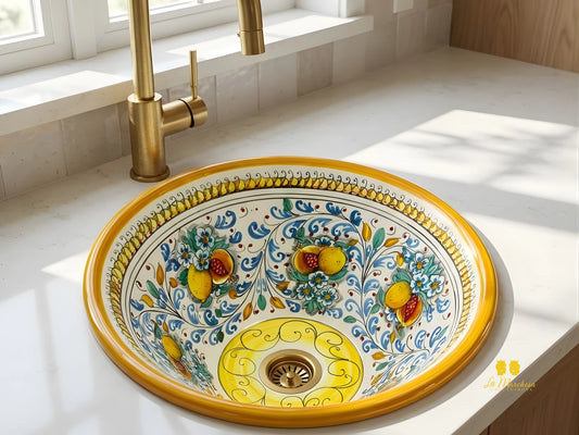 Lavello in Ceramica di Caltagirone decorato a mano per esterno/interno 45cm - Vari Decori