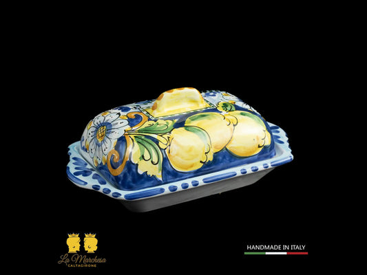 Pirofila in Ceramica di Caltagirone blu cobalto limoni - Diverse misure