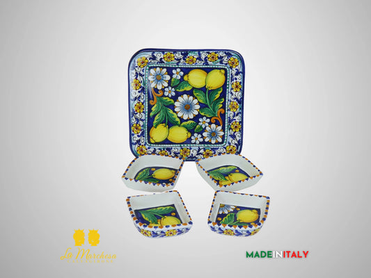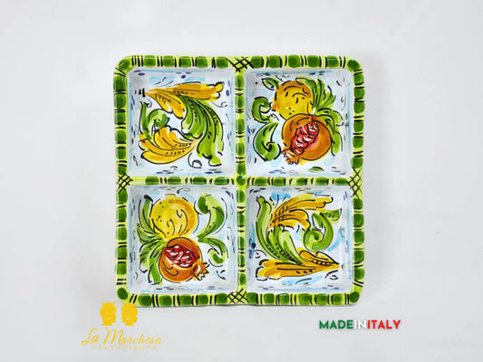 Antipastiera in Ceramica di Caltagirone Quadrata Decorata 4 scomparti - Vari Decori