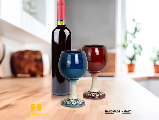 Bicchiere in Ceramica di Caltagirone Calice Vino tornio - Vari Colori
