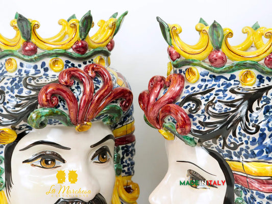 FINE SERIE - Teste di Moro Corona Blu in Ceramica di Caltagirone 15cm