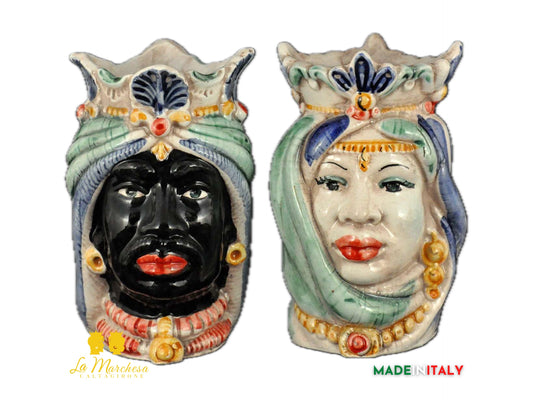 Coppia di Teste di Moro in Ceramica di Caltagirone Afro H14 - Vari modelli