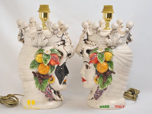 Lampada Teste di Moro ceramica Caltagirone lume fumè frutta h36