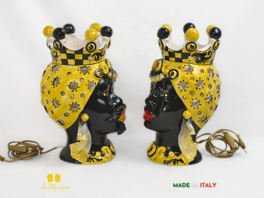 Lampada Testa di Moro in Ceramica di Caltagirone fori giallo nero 38cm