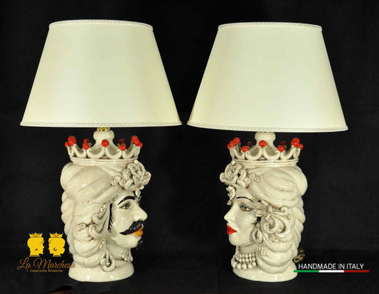 Lampada Teste di Moro siciliane in Ceramica di Caltagirone fumé 31cm - Vari Modelli