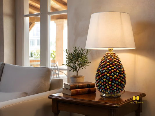 Lampada Pigna Siciliana Multicolore Madreperla Ceramica di Caltagirone - Varie Misure