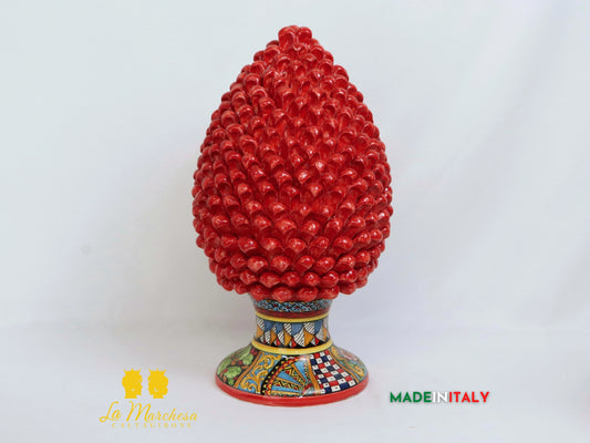 Pigna Siciliana Artigianale in Ceramica di Caltagirone Rosso base Carretto - Varie Misure