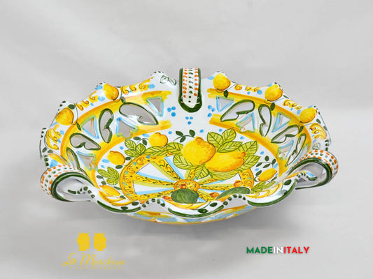Centrotavola ciotola Ceramica di Caltagirone con manici Gialli Limoni - Vari Modelli