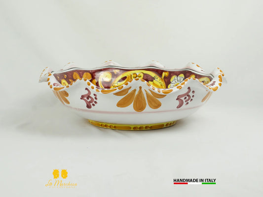 Centrotavola in Ceramica di Caltagirone tondo con manici bordeaux ornato 32cm