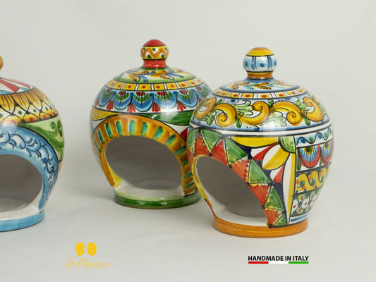 Barattoli Sale e Zucchero Decorati in Ceramica di Caltagirone - Vari Decori