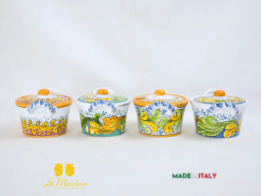 Formaggiera/zuccheriera in Ceramica di Caltagirone ornato barocco