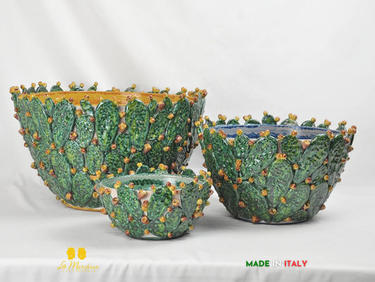 Portavaso in ceramica di Caltagirone con foglie di fichi d'india - varie misure
