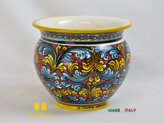 Portavaso Vaso in Ceramica di Caltagirone ornato bordeaux - Varie Misure