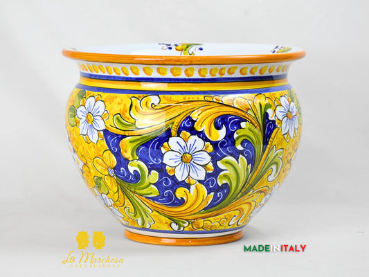 Porta Pianta Decorato Limoni in Ceramica di Caltagirone 30cm - Vari Colori