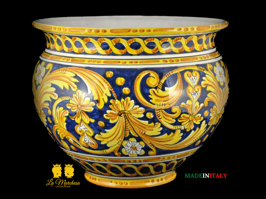 Vaso Porta Pianta Coffa Decorata in Ceramica di Caltagirone 22cm