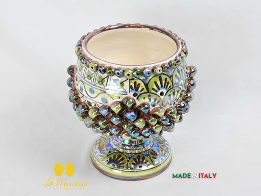 Portavaso Mezza Pigna Verde Madreperla in Ceramica di Caltagirone 27cm