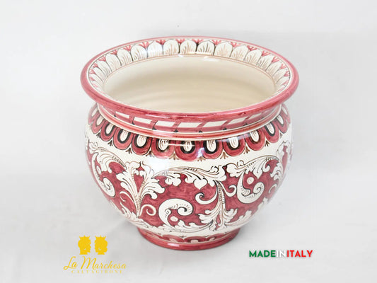 Porta Pianta in Ceramica di Caltagirone Ornato Bordeaux 26cm