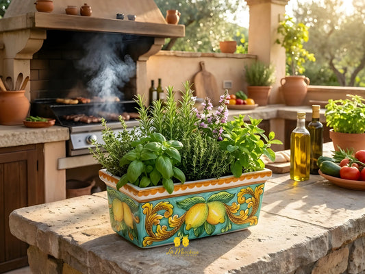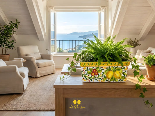 Fioriera Rettangolare in Ceramica di Caltagirone Limoni 32cm - Vari Colori