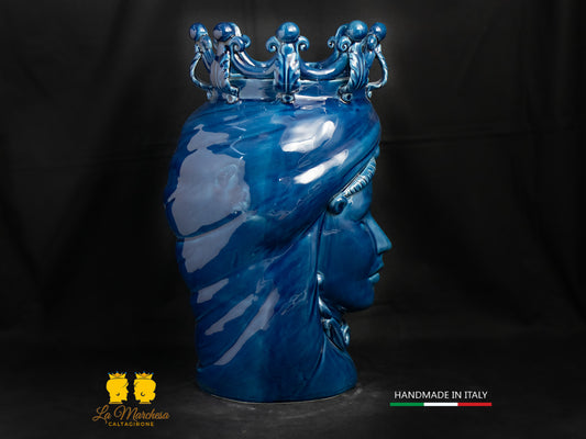 Testa di Moro in Ceramica di Caltagirone Donna blu cobalto 36cm